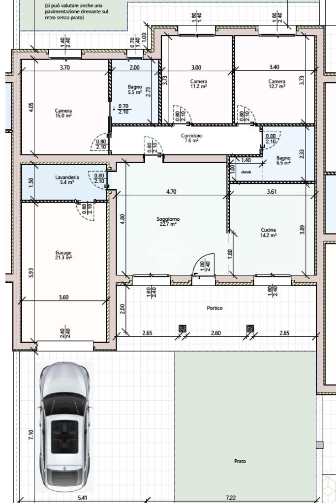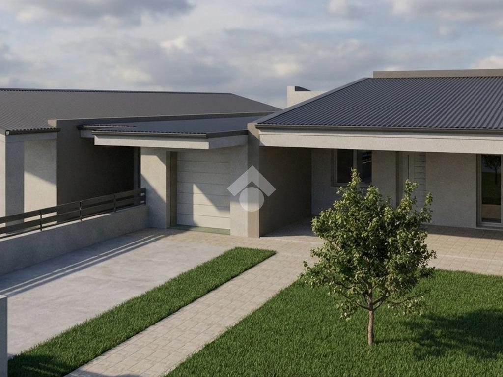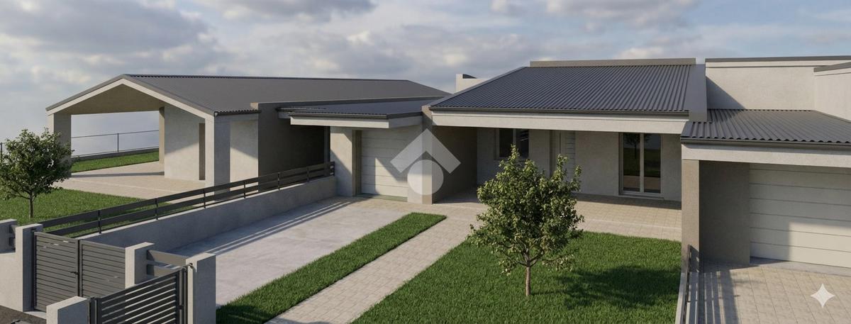 La villa offre una zona giorno in open space che si affaccia su un ampio portico con giardino privato, sul fronte e sul retro, ideale per chi cerca spazi esterni da vivere. La soluzione comprende tre camere da letto, perfette per famiglie o per chi necessita di uno studio o una stanza per gli ospiti. Sono presenti due bagni moderni ed un comodo garage direttamente collegato all'abitazione.